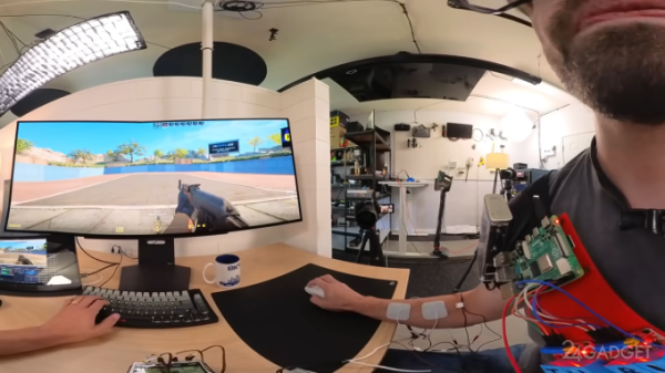 Американский видеоблогер Basically Homeless продемонстрировал самодельную систему нейромышечного автоматического прицеливания (aimbot), которая с помощью компьютерного зрения и электрических импульсов заставляет мышцы мгновенно реагировать, точно прицеливаясь в играх и превосходя по скорости выстрела многих профессиональных киберспортсменов.