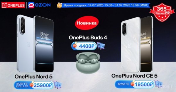 Серия Nord 5 представляет прорыв в сегменте среднебюджетных смартфонов, в основе которых лежат искусственный интеллект, мощные чипсеты и долговечные батареи. Также представлены беспроводные наушники с активным шумоподавлением. Доступны для продажи с 14 июля в официальном магазине OnePlus на OZON.