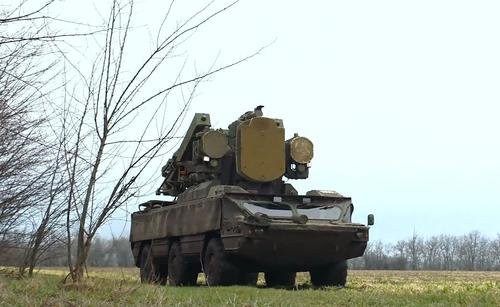 Прикрытие ЗРК от FPV-дронов ВСУ осуществляет стрелковое отделение на автомобиле типа «пикап». После уничтожения цели расчёт оперативно переезжает в район боепитания и технического обслуживания комплекса.