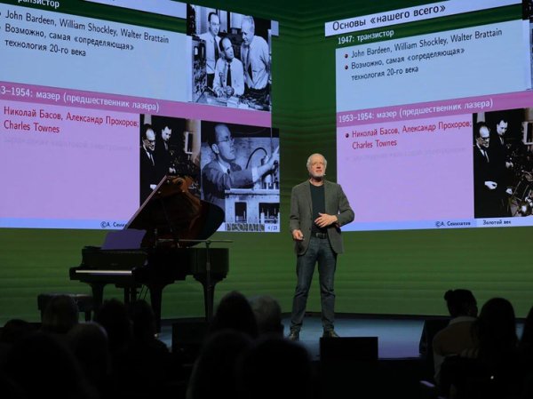 Мы попали на один из концертов цикла — он был посвящен периоду 1940-1950-х годов, когда открыли структуру спирали ДНК, разработали атомную бомбу и устройство атомной электростанции — как минимум о паре десятков научных достижений легким и понятным языком рассказал Алексей Семихатов. Перед глазами пронеслась история достижений в броских фактах и лицах — откуда взялся термин «большой взрыв», как сделали первое фото Луны в космосе и многое другое. А затем зазвучала музыка.