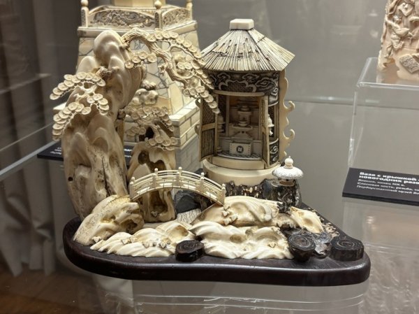 Большинство экспонатов здесь датированы XIX веком, но дело тут не в «старинности» вещей, а в их изысканности. С удовольствием рассматриваешь храмовую скульптуру в виде священного лотоса из Тибета, потрясающей красоты китайские вазы, кувшины и чарки. Отдельного внимания достойны японские изделия из слоновой кости — тончайшие искусные работы мастера делали, не используя высокие технологии. Искусство Китая и Японии в коллекции Бурылина — отдельная интересная история.