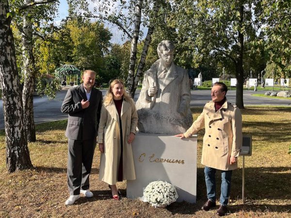К юбилею Сергея Есенина, который вся страна отмечает в этом году, в Музеоне в солнечный сентябрьский день официально открылось новое «есенинское место» — памятник Сергею Есенину. Новая площадка в парке уже получила неофициальное название «литературный уголок». Здесь рядом с Есениным установлены и другие памятники писателям.