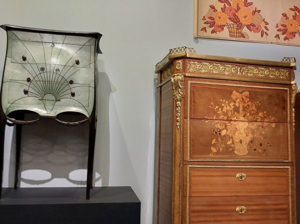 Ар-деко – символ шика и роскоши. На выставке собрано более тысячи таких предметов мебели и декора: шкафы, комоды, столы, кресла, ширмы, светильники, фрагменты обоев, костюмы, посуда, ювелирные украшения. Есть удивительные вещи, поражающие своей оригинальность, как мобильный бар 1924 года, напоминающий сундук на лыжах.