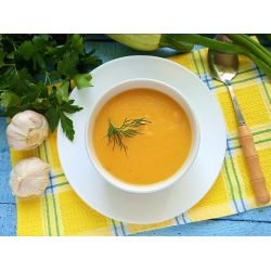 Готовый суп подаем к столу посыпав его смесь салатных семян, в состав которой входят семена льна, подсолнечника, тыквы и кунжута. Хорошо подойдут к такому супу-пюре чипсы из лаваша.
