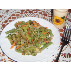 Я очень люблю «Хмели — Сунели». Процесс подготовки овощей занял всего то пять минут. Содержимое сковородки перемешать и на самом маленьком огне жарить пол часа. Не забывать периодически перемешивать. Не принимая большого участия в готовке за тридцать пять минут у нас вкусный теплый салат.
